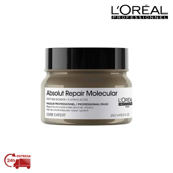 Modo de utilização: Para melhores resultados, utilizar após o Shampoo Absolut Repair Molecular e o Sérum. Aplicar sobre o cabelo húmido. Dividir o cabelo em 2 secções e aplicar uma porção por secção. Aplicar mais se necessário. Desembaraçar para uma distribuição ótima. Deixar atuar e não passar por água. Secar com o secador ou naturalmente.