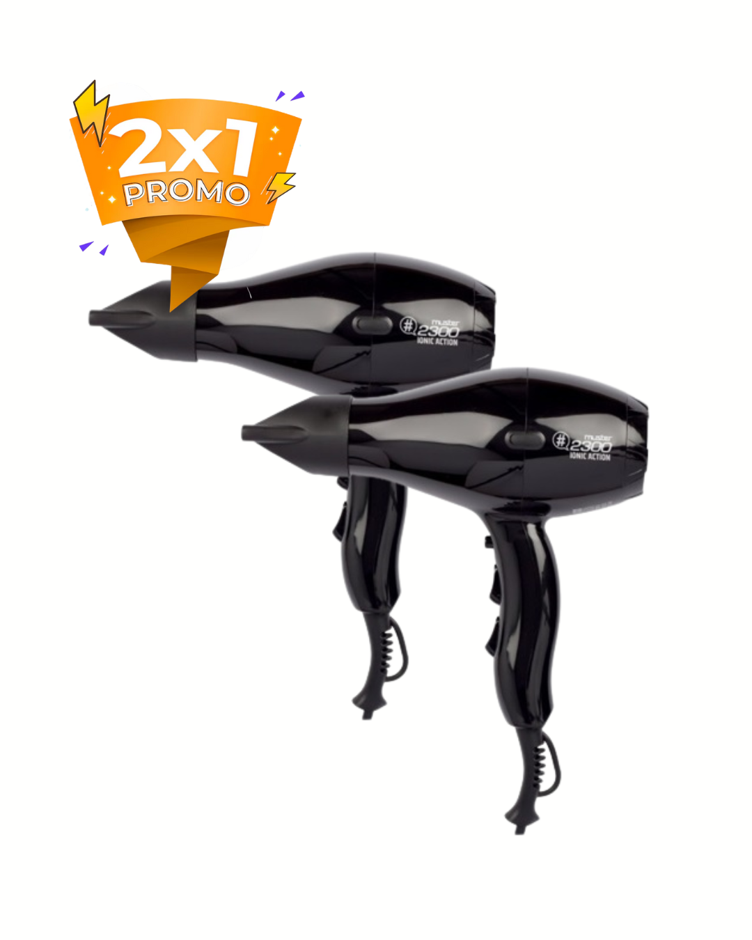 Secador de cabelo Muster Professional de 2100 W com gerador de íons negativos para evitar o frizz. Motor CA de longa duração. Botão de jato frio. 2 velocidades e 3 temperaturas. Filtro fácil de limpar. Pack 2 unidades.