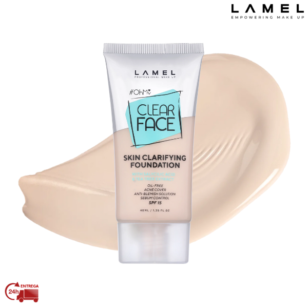 A Lamel Oh My Clear Face Foundation Nº 401 SOFT BEIGE é uma base líquida de 40ml que proporciona uma cobertura natural e uniforme.